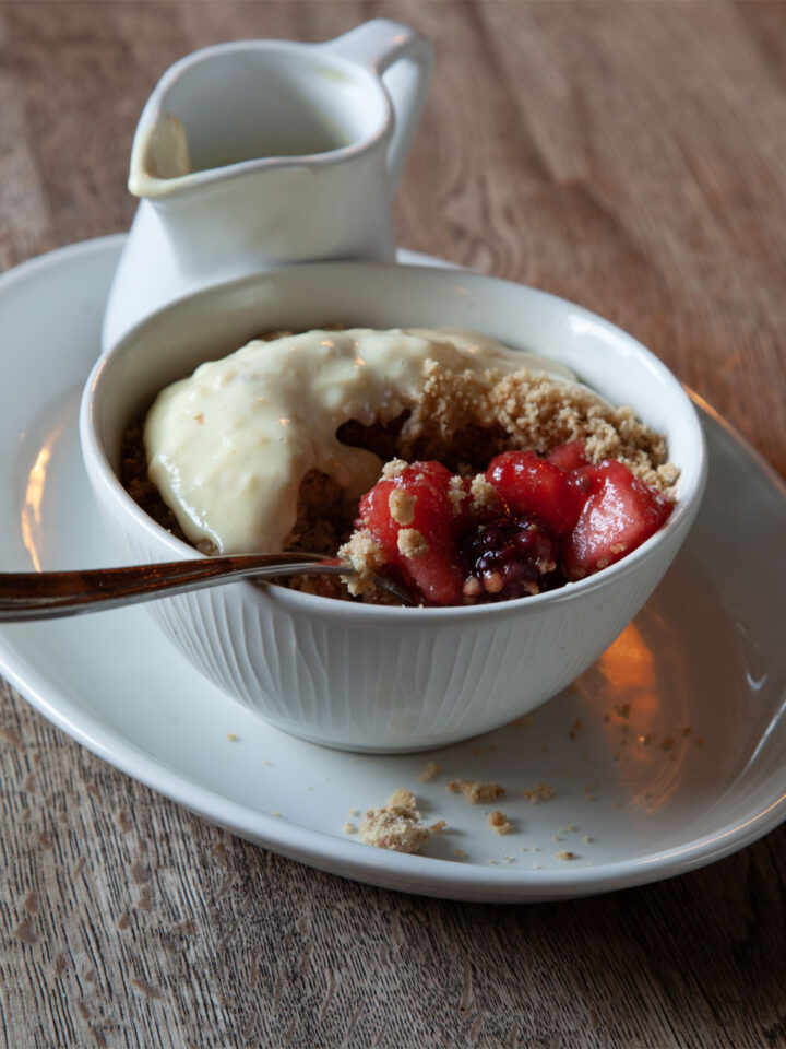 Comforting starters such as double Gloucester soufflé or seasonal soup with pub bread and butter are the perfect warm-up to the main event. Try our steak with crispy fries and confit garlic butter or local ale battered haddock and chips. And don’t forget to join us on a Sunday for our famously good roast.